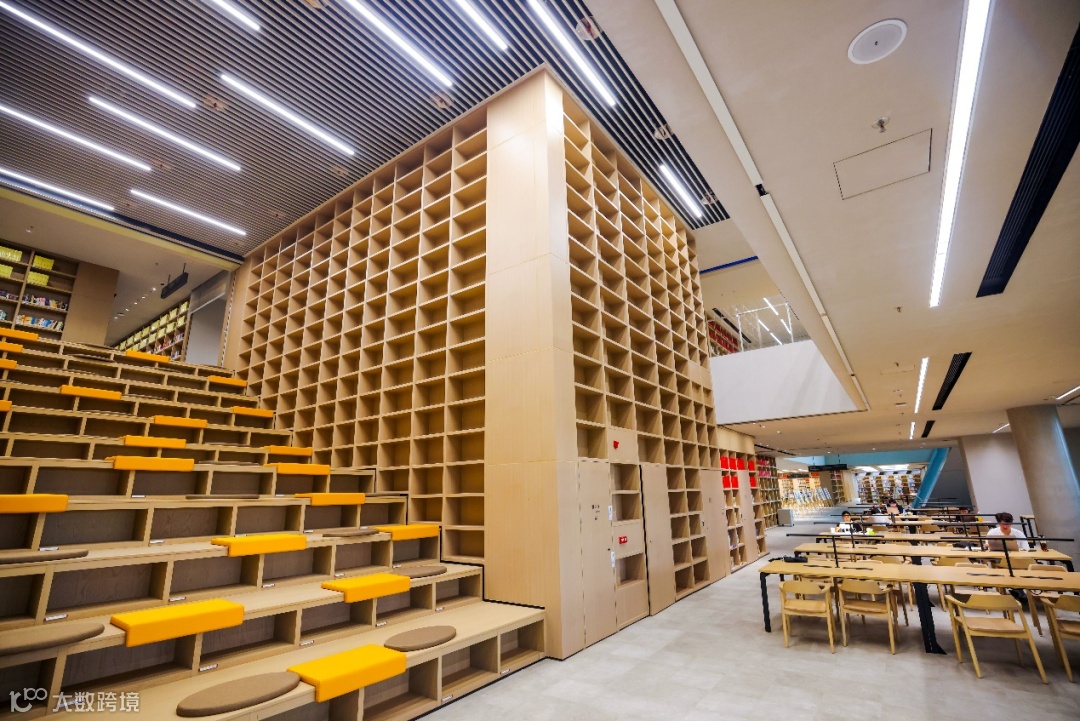 华南理工大学广州国际校区图书馆建筑面积52338㎡,地下1层、地上5层、建筑高度32米,由图书馆、档案馆、公共空间三部分组成,是集藏阅查一体服务区、密集书库、档案库房、多媒体研修空间、24小时自习室等功能的公共建筑。设有阅览座位2000余席,设计藏书量170万册。