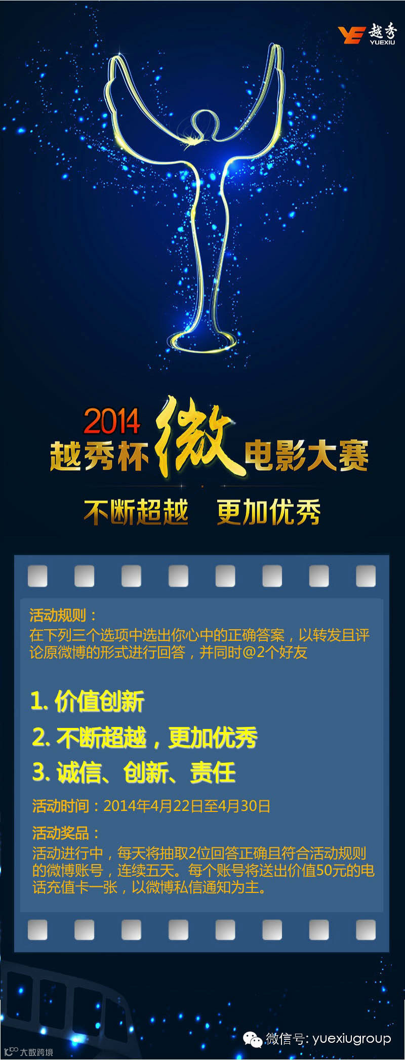 下列既是“品牌口号”,又是”企业核心价值观”的是哪个呢?快来越秀集团官方微博评论,转发有奖哦!活动规则参看下图。
