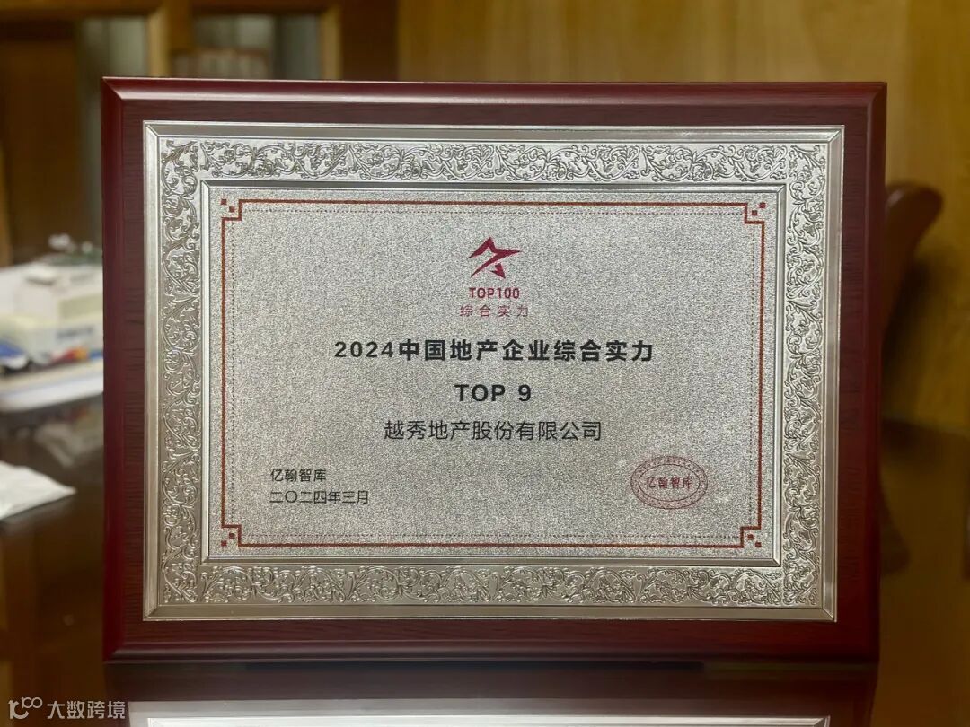 近日,由亿翰智库主办的2024房地产TOP100研究成果发布会暨第八届不动产行业高质量发展峰会在上海召开,并隆重发布多项权威研究成果。越秀地产荣膺“2024中国地产企业综合实力TOP9”、“2024中国房企成长性十强(国央企)”、“2024中国房企社会责任十强”三项殊荣。