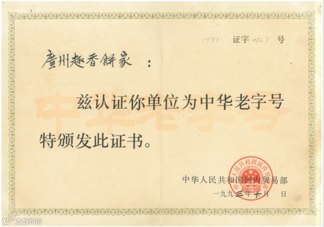 “趣香”品牌始于1938年,主营月饼、传统糕点、西式点心和休闲食品等,被誉为“广式月饼界的黄埔军校”,是广式糕点业的传承者与领跑者,1993年被原国内贸易部授予“中华老字号”称号,2011年被商务部认定为“中华老字号”。