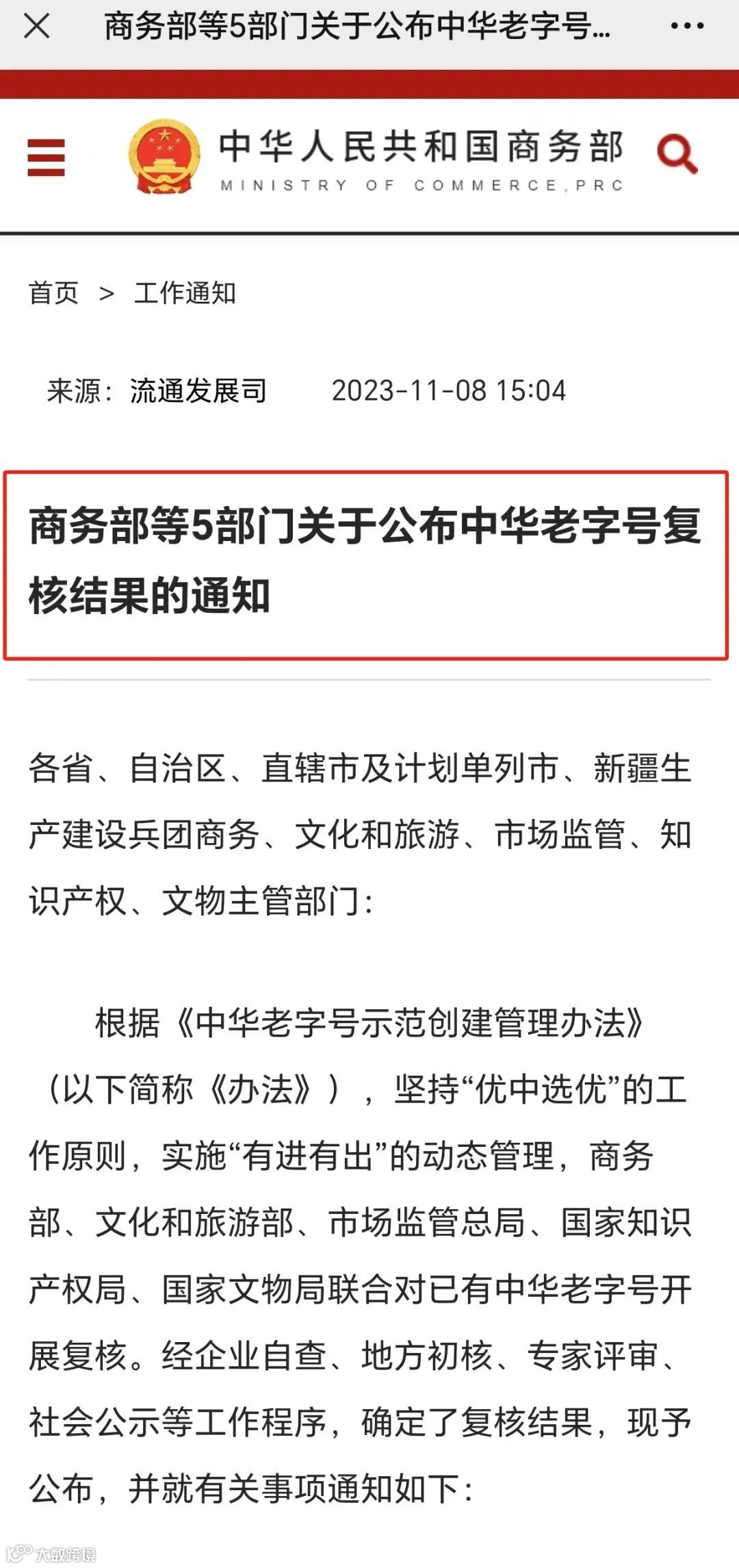 近日,商务部等5部门发布《关于公布中华老字号复核结果的通知》,越秀集团旗下食品品牌“皇上皇”和“趣香”顺利通过此次复核,体现了“皇上皇”和“趣香”品牌经受住了时间和品质的双重检验,其深厚的文化底蕴和商业价值得到了市场和客户的认可。