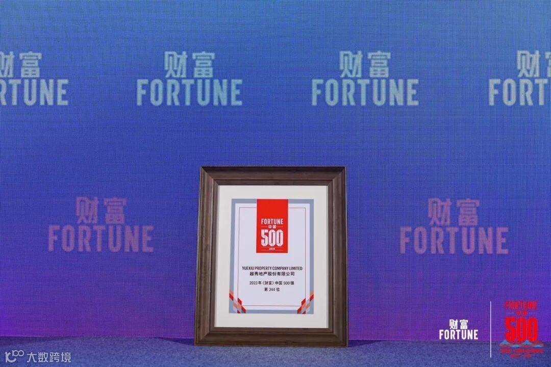 ▲2023年《财富》中国500强 | 越秀地产获奖证书