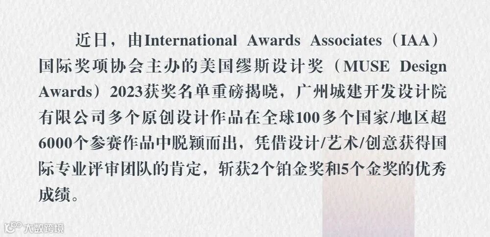 喜讯 | 广州城建开发设计院斩获2023缪斯设计奖铂金、金奖等七项大奖