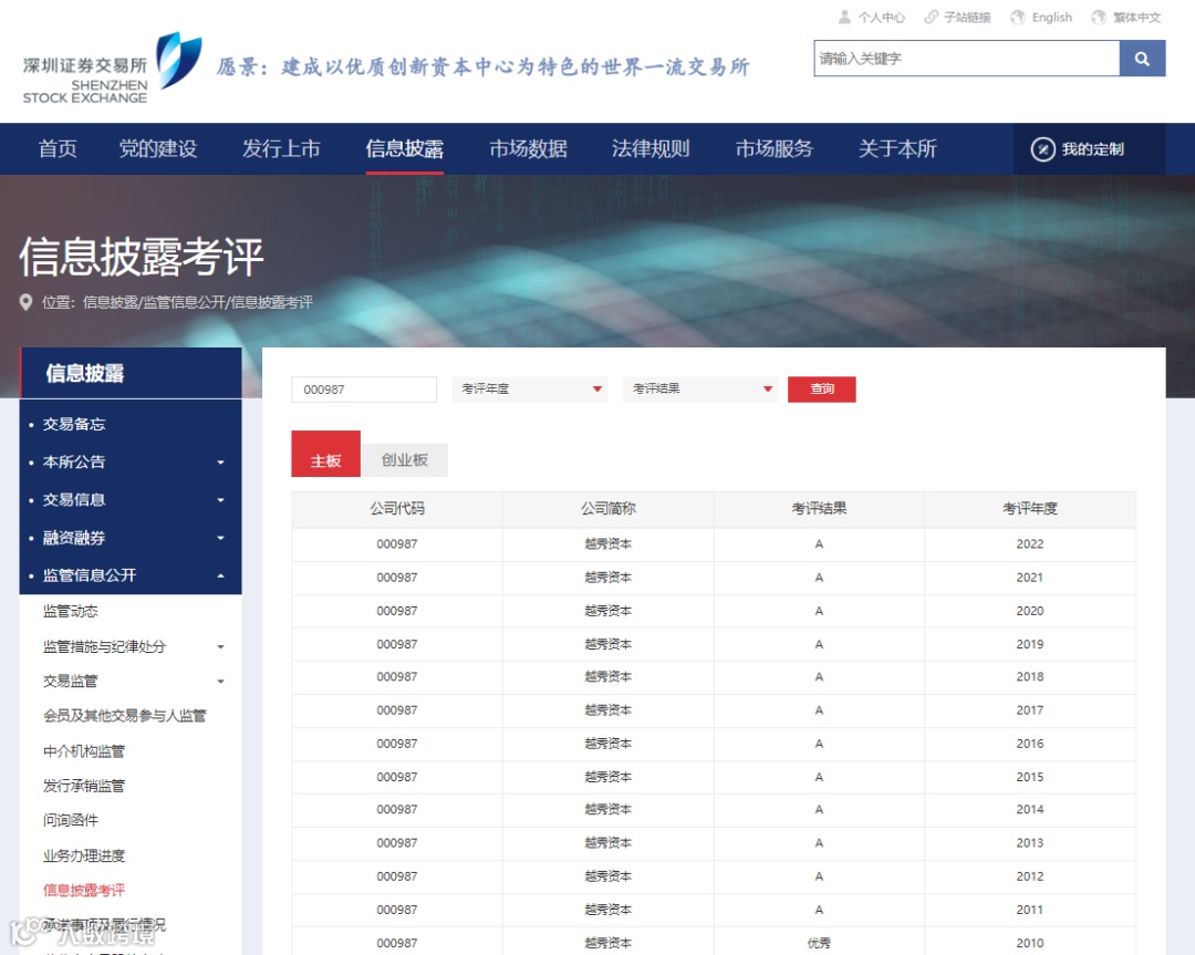 近日,深圳证券交易所(下称“深交所”)发布深市上市公司2022-2023年度信息披露评价结果,越秀集团旗下越秀资本(000987.SZ)再次荣获A级,这是越秀资本连续13年获得该项考评最高评级。