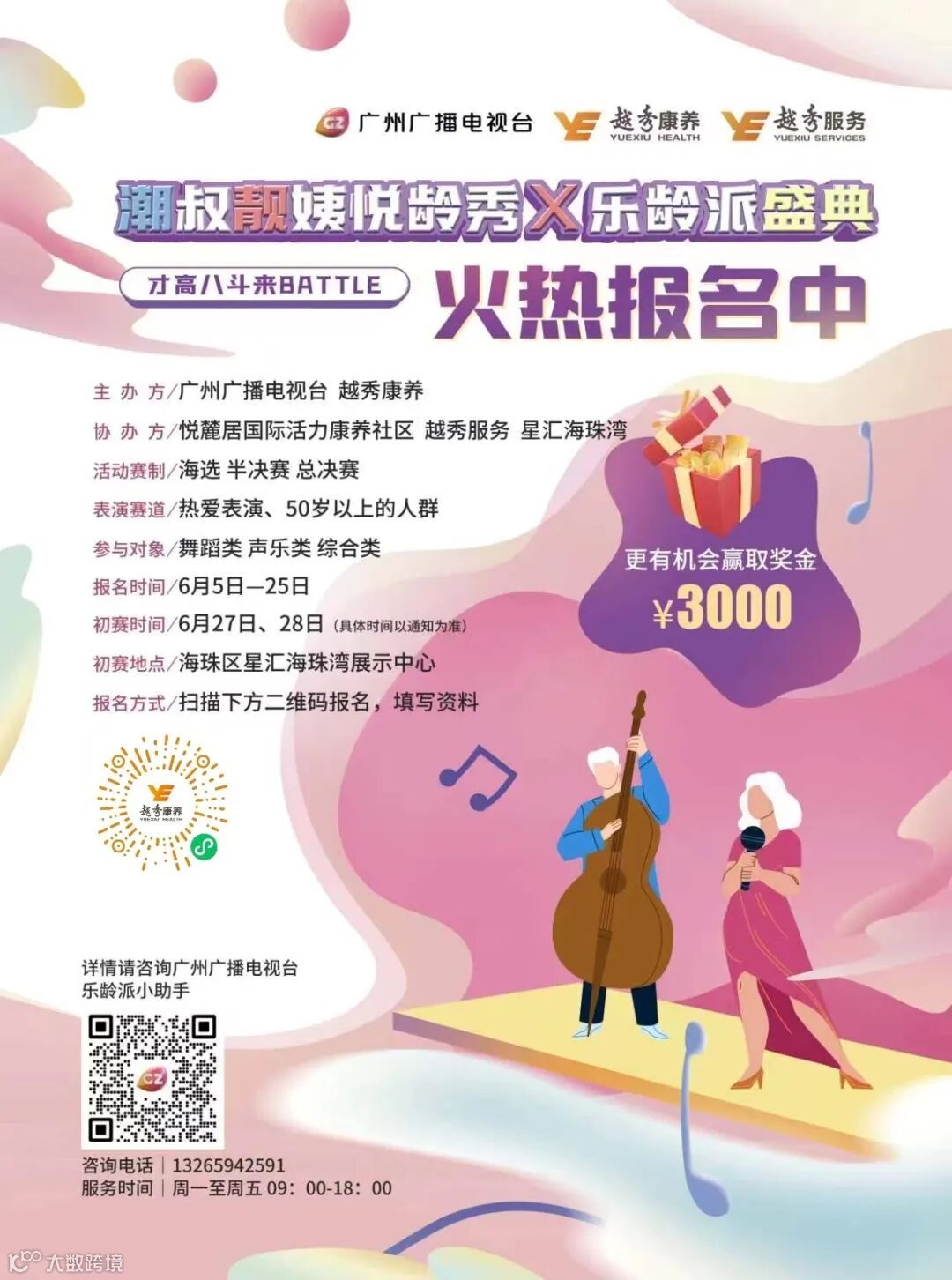 参赛者须通过主办方建立的线上链接完成报名,报名资料提交通过后,广州广播电视台乐龄派小助手将与您联系,确认相关事宜,请您留意信息及通知。