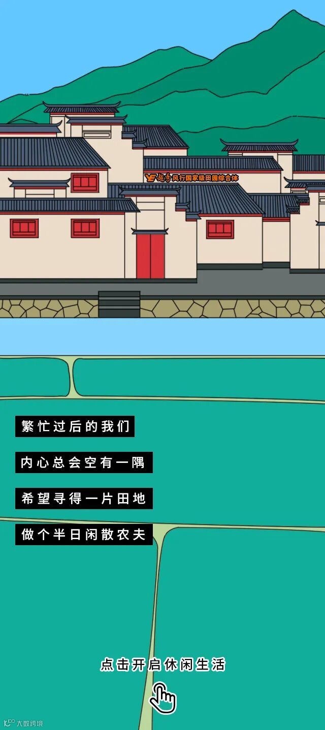 项目汇聚全国特色美食和节庆主题活动,开创“一牛一田一院一管家”式田园生活场景,为游客提供一站式田园生活度假新体验,特别适合开展亲子度假、公司团建和研学培训,圆每个都市人的田园梦!