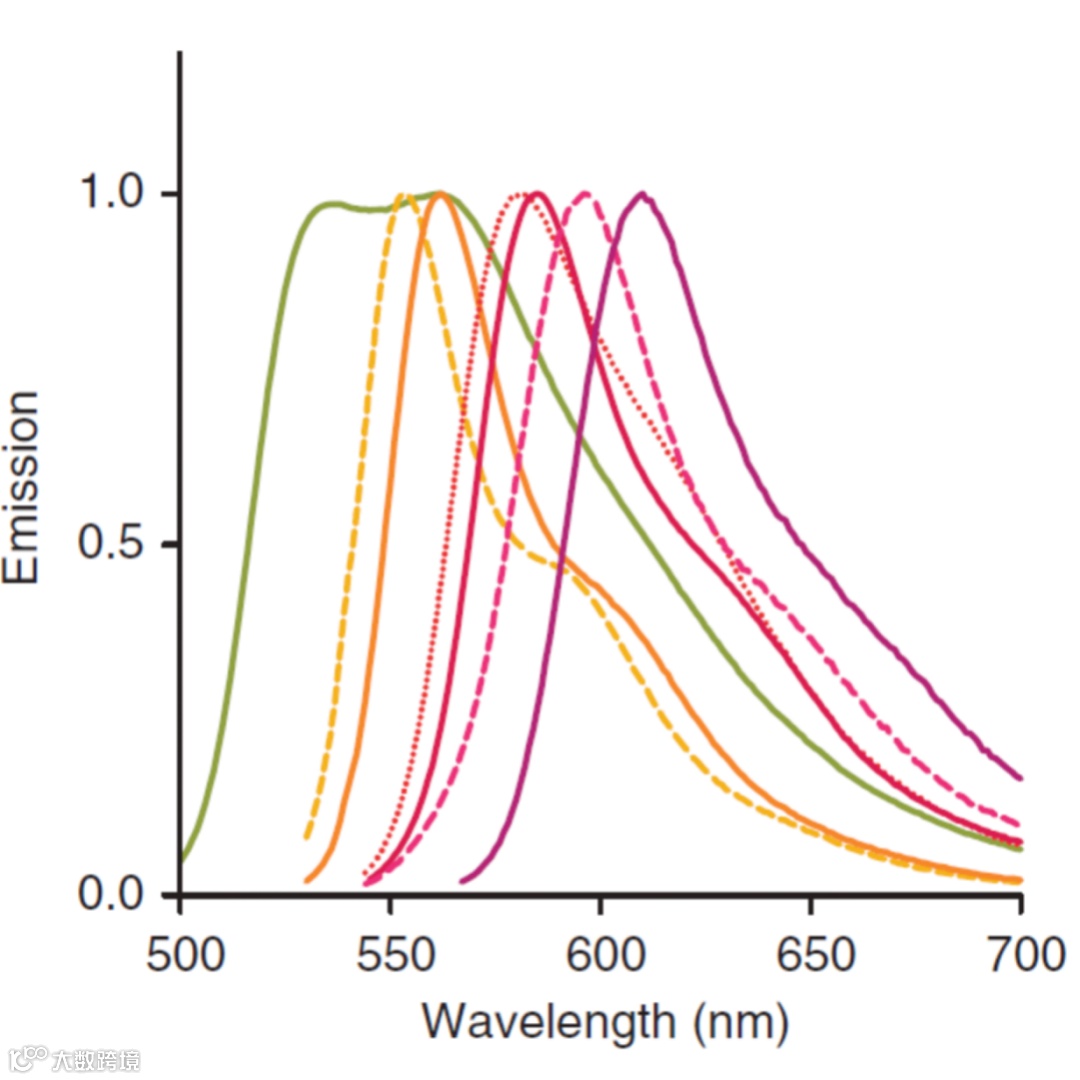 当然,在DsRed“进化”过程中,不乏一些特征鲜明的蛋白,荧光蛋白改造探索的脚步也远未停止。如tdTomato是迄今为止报道的最亮的荧光蛋白,使其能够在非常低的光照水平下应用于活细胞成像研究。mPlum具有mFruit 系列中最深的发射波长,具有良好的信噪比,可以用于组织成像等。