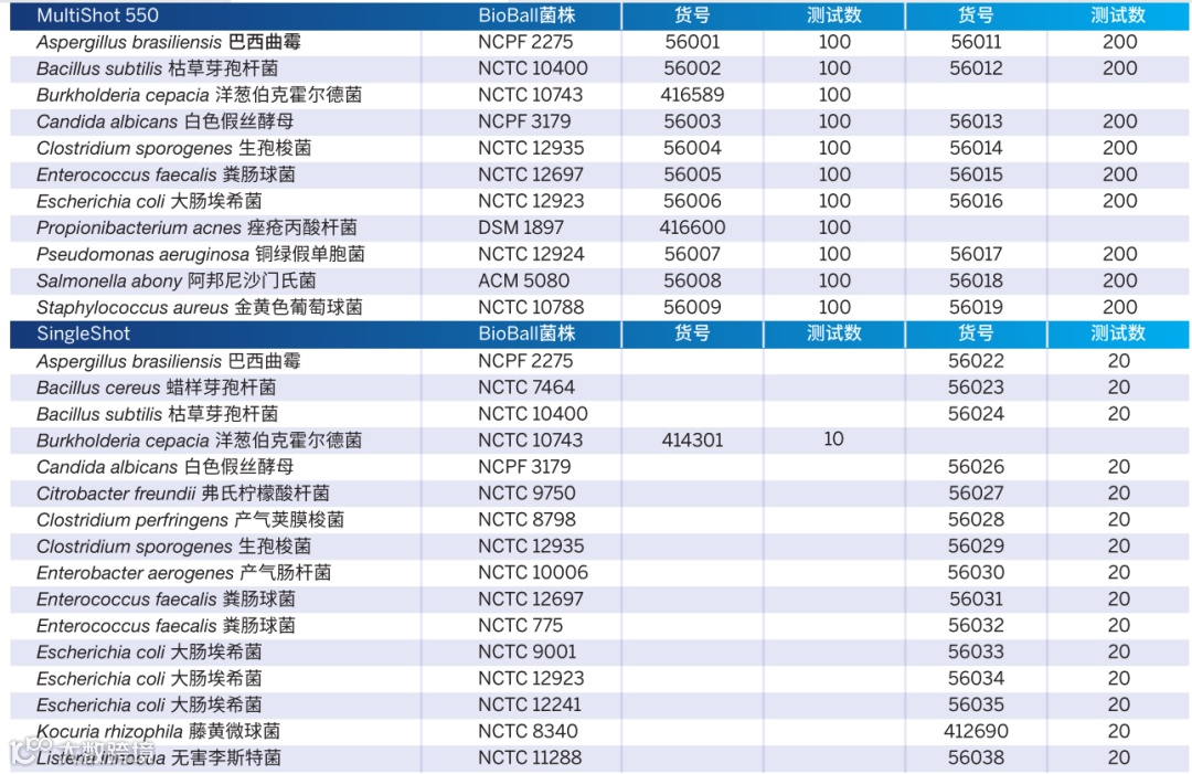 4.目前提供超过30种菌株,可应用于制药工业、食品化妆品工业及水测试,下图为部分截图。