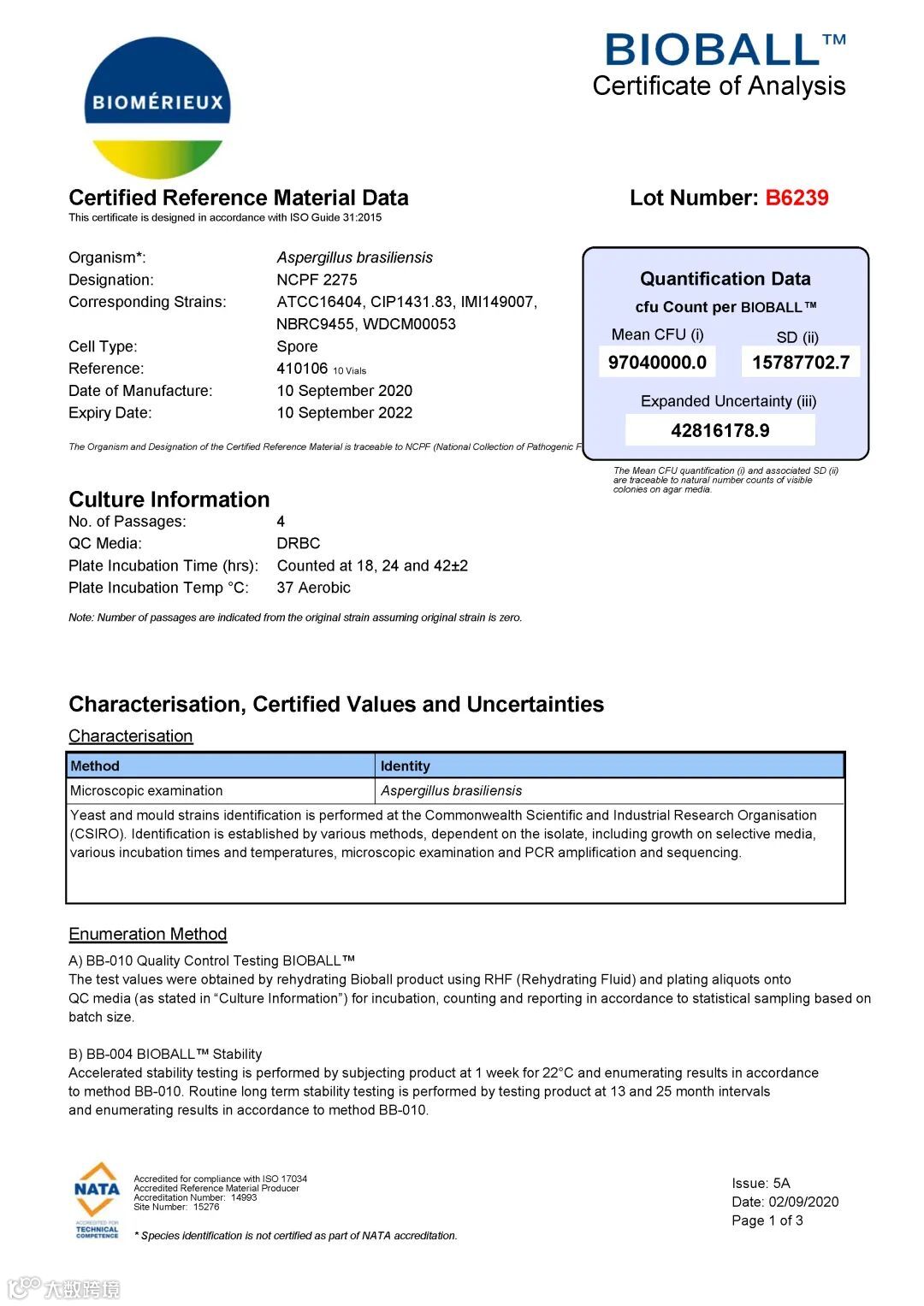 Bioball是通过ISO Guide 34认证的标准物质,意味着用户可完全信赖产品的质控报告及标准菌株的可溯源性。再也不用担心被人挑战菌株的溯源数据的准确性。