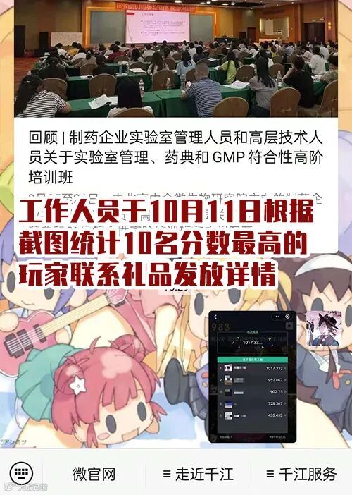 2.工作人员于10月11日根据截图统计10名分数最高的玩家,于公众号聊天框联系玩家领奖,欢迎大家踊跃发送截图,说不定获奖的就是您呢!
