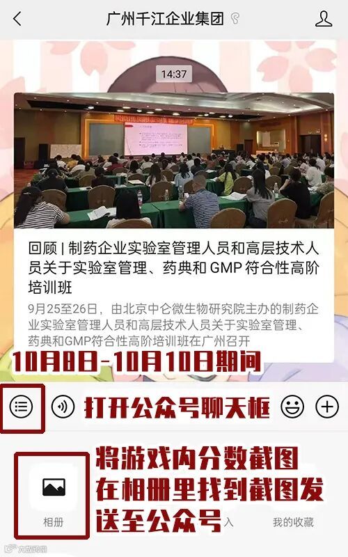 1.请玩家于10月8日-10月10日发送游戏分数截图至公众号