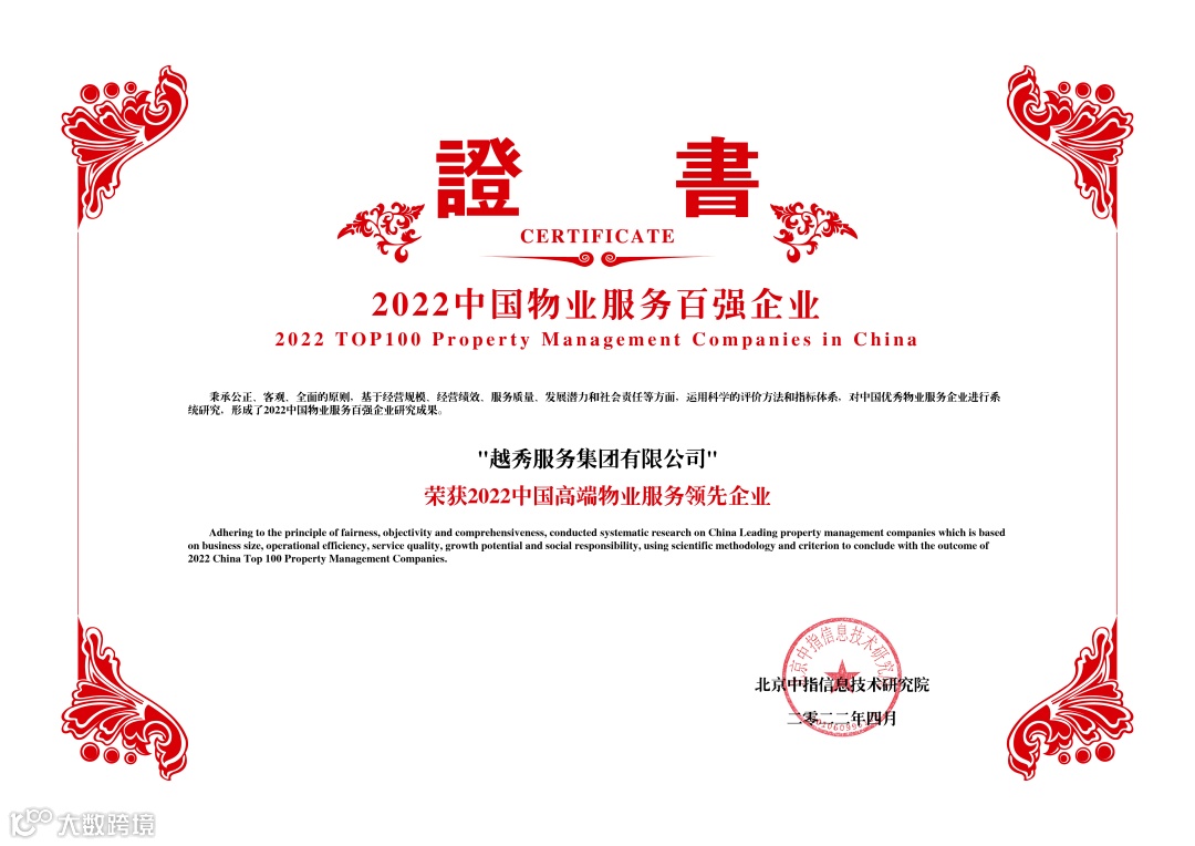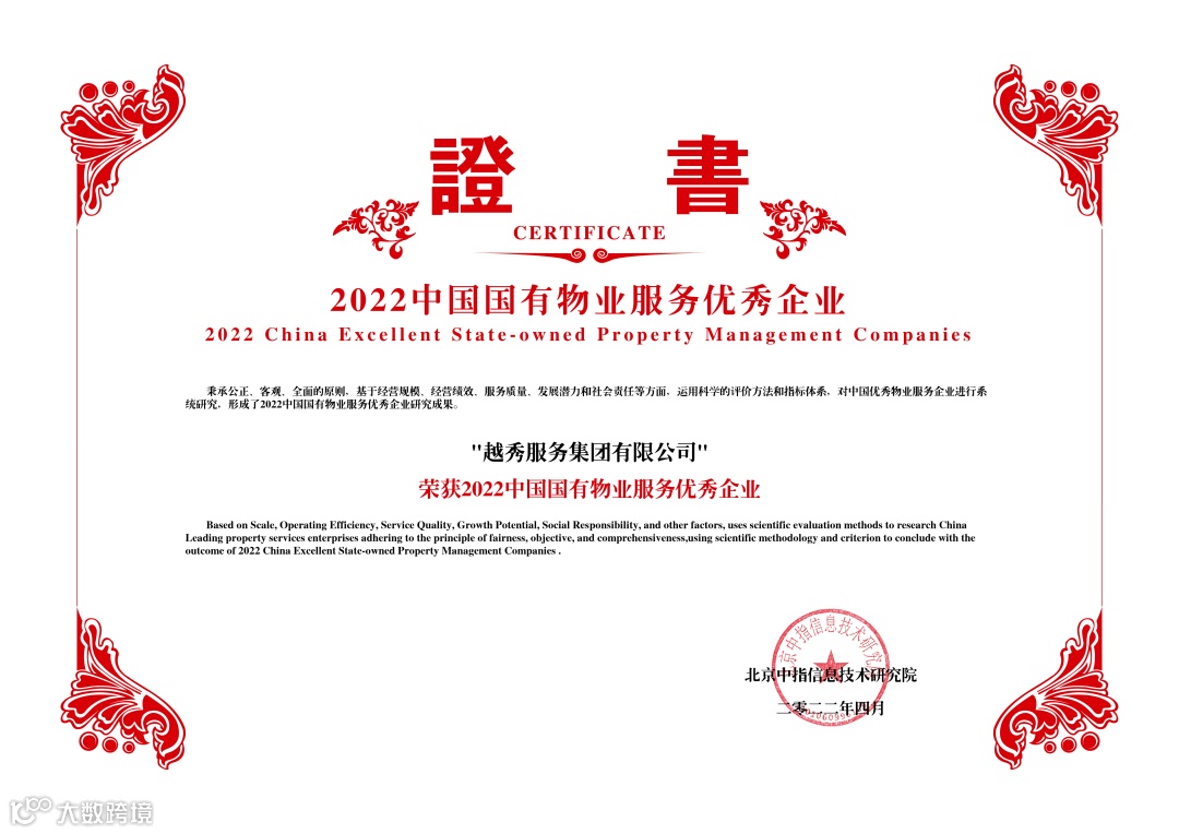 至诚发展,美好守护,以荣誉为证,以美好为鉴。未来,越秀服务将继续依托国企背景,坚守服务初心,与时代同行,持续创新服务模式、提升服务品质,为实现“中国领先的综合服务运营商”的品牌愿景而不断前行!