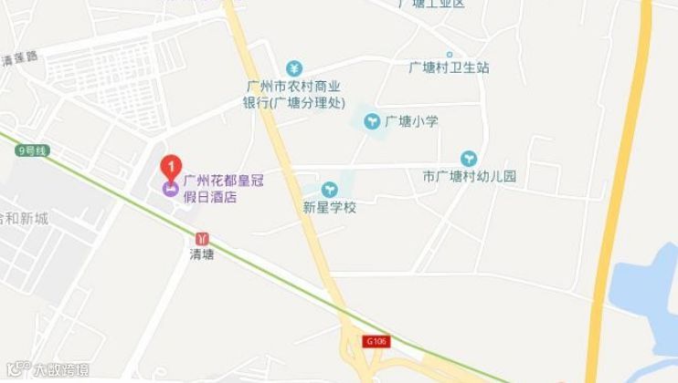 3、 广州南站: 乘地铁 2 号线 → 地铁 3 号线北延段 → 地铁 9 号线 清塘站 D 出口, 右转到酒店。(打车约 100 元左右)。