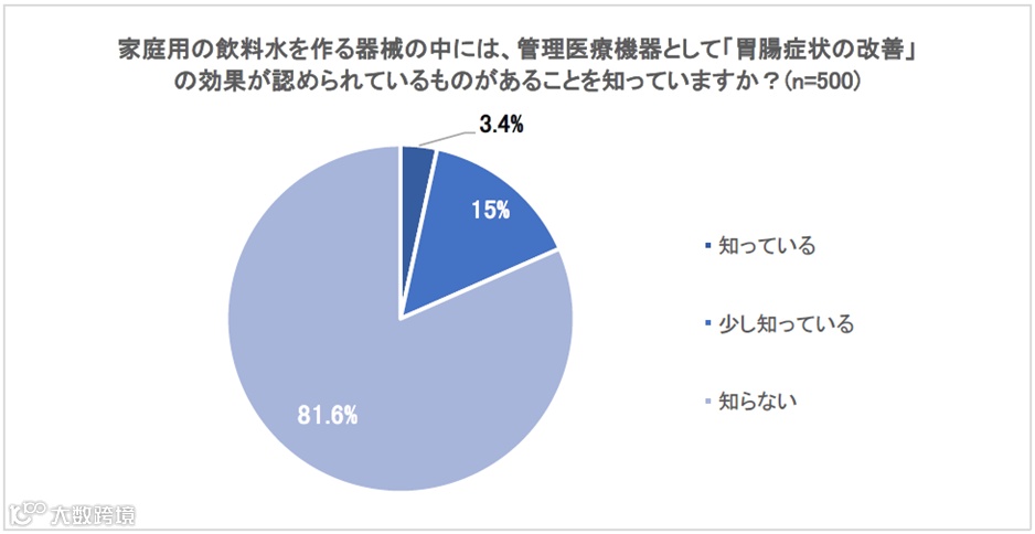 对于“你知道家庭饮用水制水产品中,有些产品作为管理医疗器械是被认可具有‘改善胃肠症状’效果的吗?”这一问题,回答不知道的人占到了81.6%。