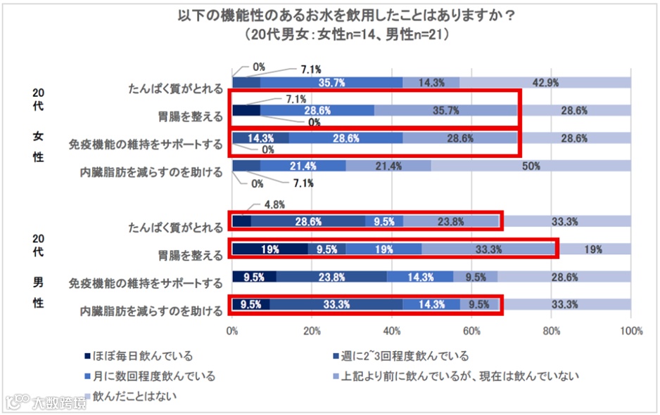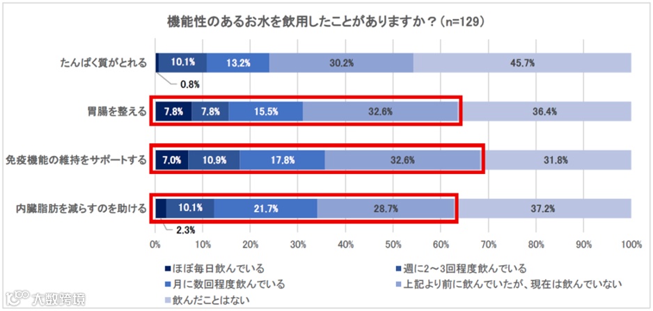 3.“具有功能的水”成为新的选择标准。超过半数的人表示“有喝过”。