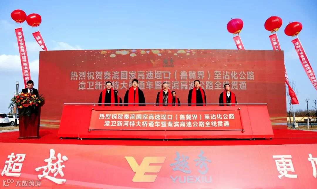 1月20日,越秀秦滨高速埕口(鲁冀界)至沾化公路漳卫新河特大桥通车暨秦滨高速全线贯通活动在秦滨高速北海停车区隆重举行。越秀集团首席资本运营官、越秀交通董事长李锋,越秀集团管理咨询协调委员会主任委员助理、越秀交通党委书记、总经理何柏青等领导出席了通车活动。