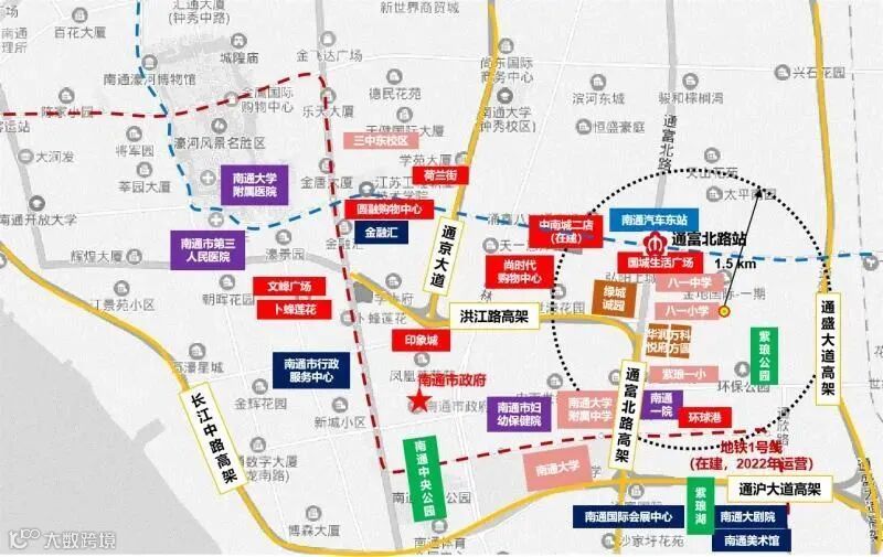 此次越秀地产新进地块位于南通市最高能级的中创区,列于八一小学东侧,3公里内商业、医疗、教育、市政公园等配套一应俱全,可享受全市各类优质资源,周边各项配套完善且优质,城市界面新颖,区域价值及居住氛围良好。地块距离地铁2号线通富路和观音山路站均在1公里范围内,距离汽车东站1.5公里,五分钟可到达通沪大道高架、通盛大道高架和通启高架,半小时畅通南通主城全域,通过通沪大道及沈海高速即可快速去往上海等周边城市,交通便捷度较高。地块综合条件优越,区位优势显著。