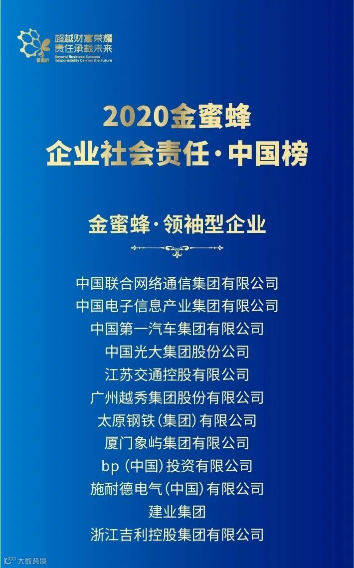 “金蜜蜂企业社会责任·中国榜”是商务部《可持续发展经济导刊》于2008年推出的、针对中国企业自愿和非盈利性的社会责任评估、评选活动,致力于在全国范围内寻找负责任经营、追求可持续发展的蜜蜂型企业,带动更多企业履行社会责任,促进中国企业社会责任发展。