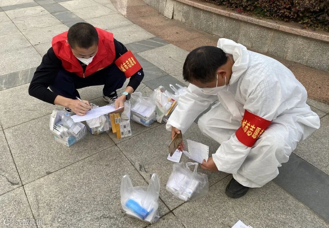 我和其他几名志愿者一起通力协作、分类盘点,再按照楼栋、分时段分发给小区住户。从早上8点一直搬到中午,虽体力不支,但大家都在咬牙坚持,无怨无悔。同时我还看到,有一位志愿者才刚刚做完社区的消杀,其手上布满了褶皱,但他毫无任何迟钝,放下工具,也参入了我们工作战线中,与我们一同作战。