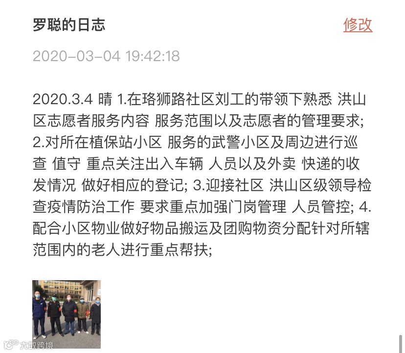 3月3日,我接到服务小区的志愿活动的具体通知了。将这个信息告知爸妈后,他们很是担心,说现在出去风险太大,不想让我去。我劝慰爸妈:我会做好防护,再说,城市生活总是要运转的,总得有人去做事。 |
