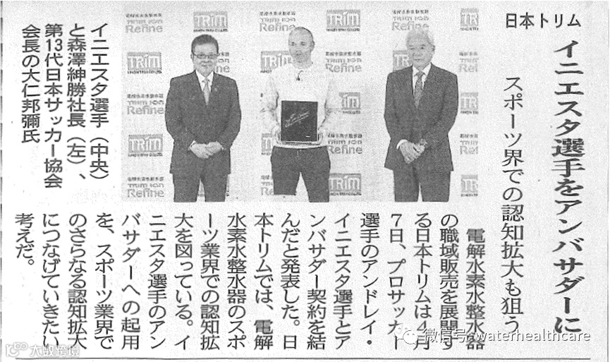 以职场领域销售模式运营电解氢水整水器的日本多宁公司发布公告称,其与职业足球运动员伊涅斯塔于今年4月7日签订了代言协议。日本多宁一直在努力提升其产品电解氢水整水器在体育界的知名度,他们希望通过起用伊涅斯塔作为代言人能进一步扩大其在体育界的知名度。