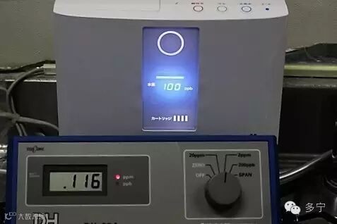 检测仪显示为0.116ppm,也就是116ppb,误差仅为16ppb。