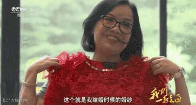 ▲杨桂荣向节目组展示自己的婚纱