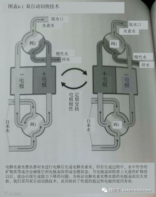 关于后者,主要是指实际工作中确曾出现过的情况,就是他们辛辛苦苦结合当时的土壤和农作物情况而特意调配并添加到水里的营养成分,一经过电解就没法用了。[注:现在所用的日本多宁生产的整水器采用了“双自动切换技术”(见图表4-1),已基本完美地解决了当时令石川先生大伤脑筋的其他厂家的电解装置所存在的问题。]