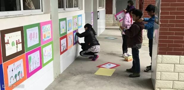 △ 阳光暖暖,天气正好,老师们利用课余时间为孩子们精心布置了作品展,装饰校园文化长廊。