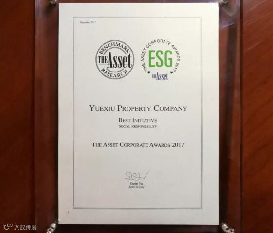 由香港著名财经杂志《The Asset》(《财资》)主办的“2017年企业管治奖”于2017年12月公布评选结果,越秀地产股份有限公司首次获得“最佳企业社会责任大奖”,这是越秀地产在2017年出版首份《环境、社会及管治报告(ESG报告)》后,在境外资本市场收获的第一个企业社会责任大奖,充分显示资本市场对公司在企业社会责任和ESG报告工作方面优秀表现的赞赏。此外,越秀地产还连续第六年荣获“企业管治金奖”。