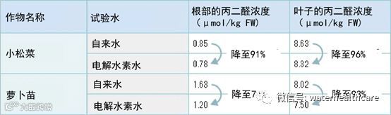 用电解水素水栽培的小松菜和萝卜苗,其氧化应激指标“丙二醛”明显下降了。由此可见,电解水素水的催生机制是与其抗氧化作用所带来的氧化应激水平下降存在关联。