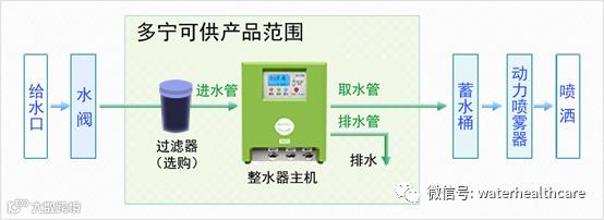 多宁公司发挥长期从事家用整水器研发的技术优势,成功推出农用整水器“还原野菜整水器TRIM AG系列”产品。自来水或地下水经过电解以后,将其喷洒或灌溉到植物上,有助于提高作物品质,同时增产增收。