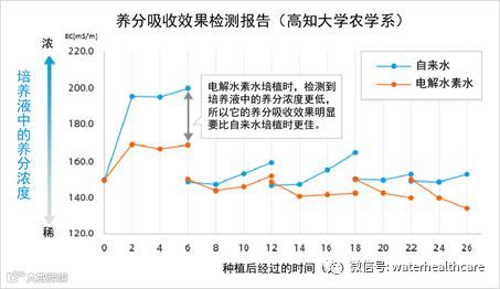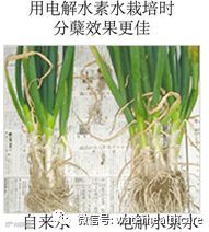 电解水素水栽培结果显示,株高(有5%的显著差异)更长了,地上部分与地下部分的重量都更重,根有张力。