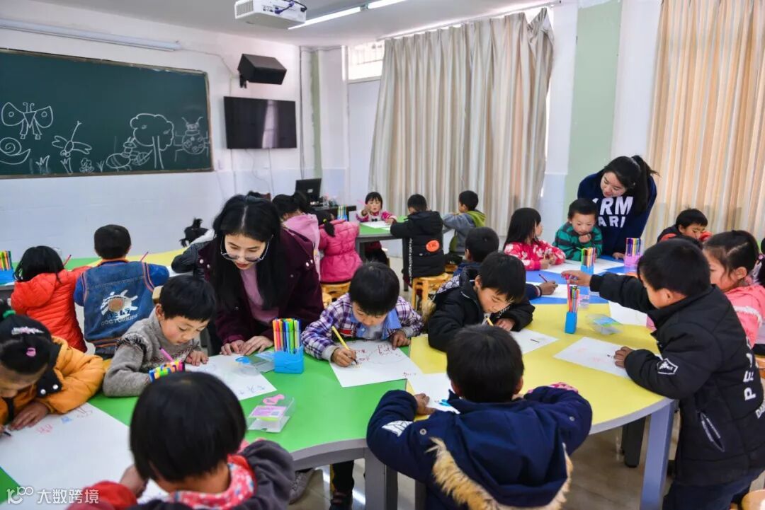 志愿者老师们带领孩子们进入课堂时光。美术课上孩子们在老师的指导下写写画画,创造出一只只美丽蝴蝶。