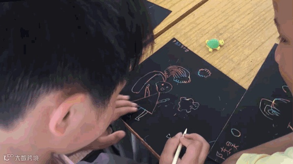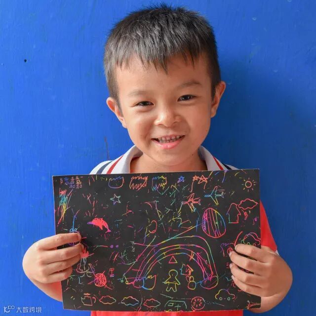 美术课上,老师们告诉小朋友们,你们知道么?哪怕是纯黑色的卡纸,但是我们也可以在上面绘出彩色的梦想。