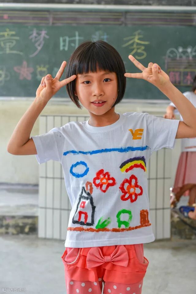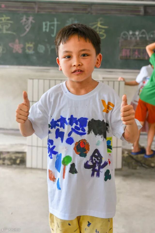 高年级的小朋友老师们为他们带来了纯白色的T恤和颜料,希望小朋友们可以把梦想穿在自己的身上。孩子们画好以后,老师们还为孩子们举办了一场童梦走秀,鼓励孩子们秀出自己的梦想,并勇敢的去追寻自己的梦想