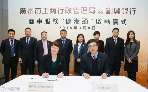 (香港 — 2018年3月8日) 创兴银行今日与广州巿工商行政管理局(「工商局」)在创兴银行香港总部签署「商事服务『穗港通』合作协议」,代表着广州巿外商投资商事服务「跨境通」正式在香港开启,也标志着创兴银行跨境客户服务更进一步。