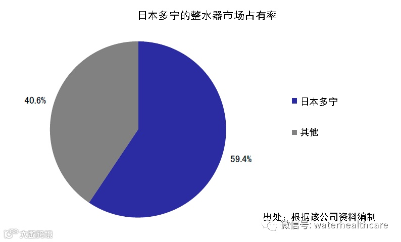 在该公司主营产品电解水素水整水器这个市场中,保持着远超第2名的压倒性市场占有率优势。根据碱性离子整水器协议会公开资料,市场参与者共有16家,其中包括该公司在内有12家企业加入了协议会。作为专业厂家,该公司连续14年保持该市场的龙头地位,市场占有率是位列第二名企业的近4倍高达59.4%。电解水素水的生成能力可以得到长期保持的专利技术以及植根于科学手段的研发能力,是该公司高速发展的可靠保障。
