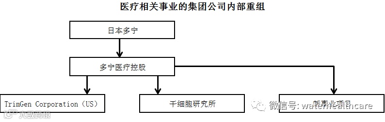 2013年10月在大阪市开设了控股公司(株)多宁基因控股的办事处,2015年3月该子公司更名为(株)多宁医疗控股,把美国子公司TrimGenCorporation和再生医疗相关事业的干细胞研究所纳入旗下管理。先进医疗相关事业非常领先且发展速度很快,所以谋求通过自主经营、筹措资金来扩大事业规模,最终实现在日本上市的目标。正在完善内部管制架构,强化研发、销售、管理体制。