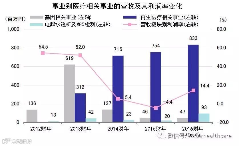 医疗相关事业方面,计划通过再生医疗业务的增长、基因相关业务的成本降低、电解水透析业务的正式上马等工作,实现整体的盈利。