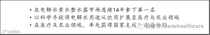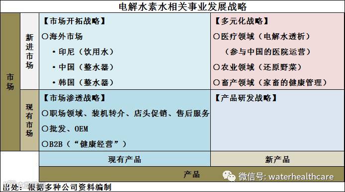 在新兴市场的医疗和农业领域采取的是以电解水素水生成技术为根基的新产品研发“多元化战略”。