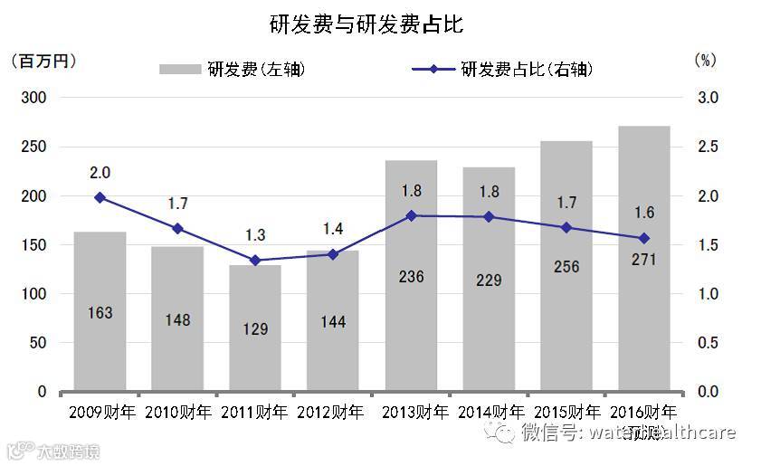 该公司研发费水平介乎年均2~3亿日元,占总营收的比例(R&D占比)为1~2%,通过研究项目外包方式控制了成本。不只限于产学合作形式的基础研究和新用途的开拓,也定期地对其核心产品家用电解水素水整水器进行新品开发及上市。