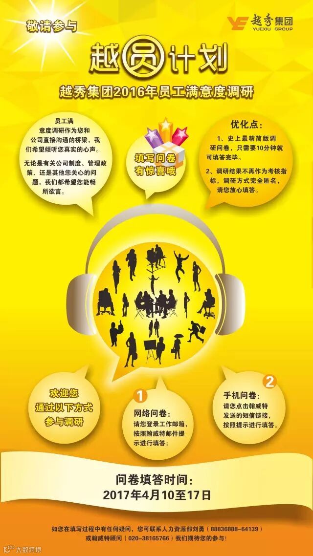导读:越秀集团2016年度员工满意度调研正式开始!