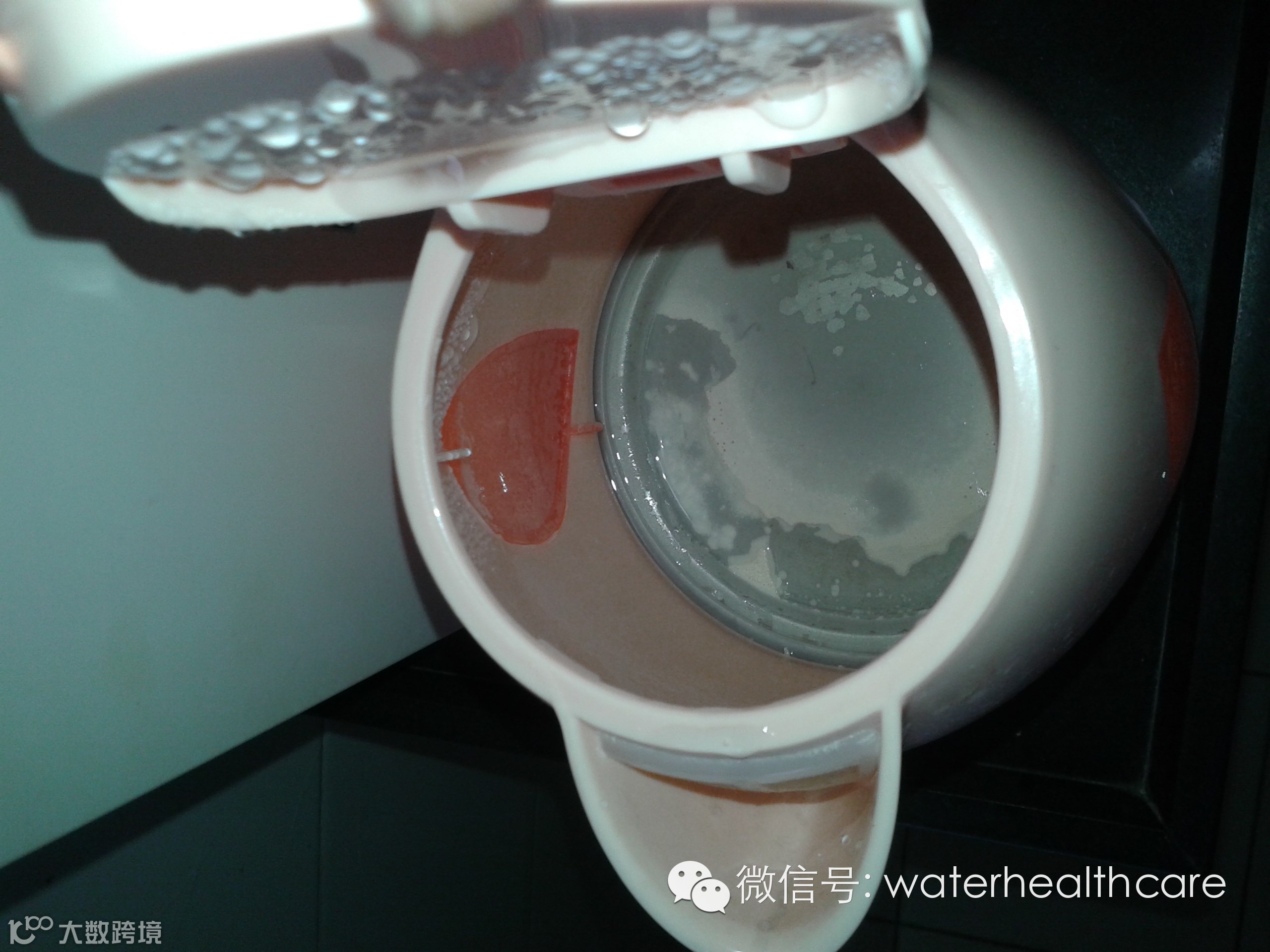 盛装还原水或碱性水的容器或水壶内胆上常常会发现有白色漂浮物或白色附着物,其实也是因为水中矿物质成分(主要是钙)与空气中二氧化碳气体反应形成白色的碳酸钙,药房中也有不少主要成分为碳酸钙的补钙产品,它对身体无害。碱性越强的还原水就越容易出现,同时煮沸或者加热也更容易出现。但如果觉得有碍观瞻的话,那么建议可以调低还原水浓度。