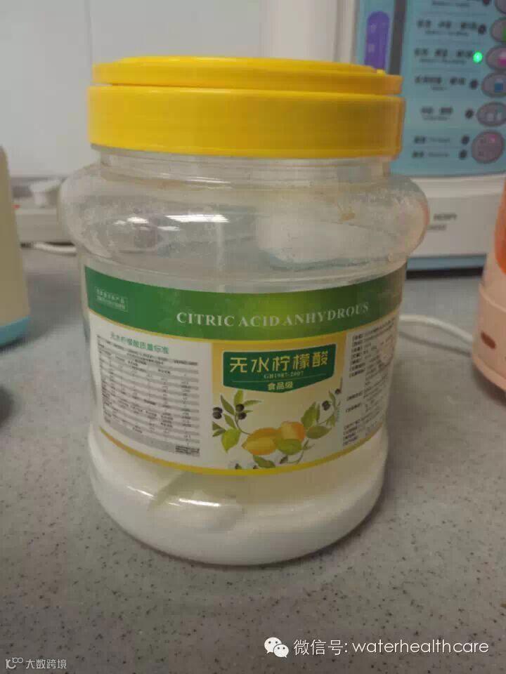 4.网上也能买到食品级柠檬酸颗粒,一大罐才20多块钱,舀一勺兑水浸泡容器。