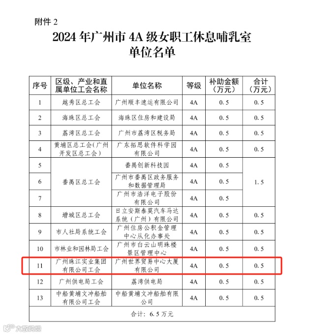 近日,广州市总工会女职工委员会公布2024年广州市A级女职工休息哺乳室名单,珠江商管工会精心打造的爱心妈妈小屋成功获评广州市4A级女职工休息哺乳室,并获得广州市总工会建设经费补助。