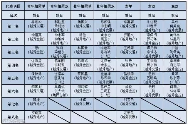 2016年越秀集团羽毛球单项赛成绩