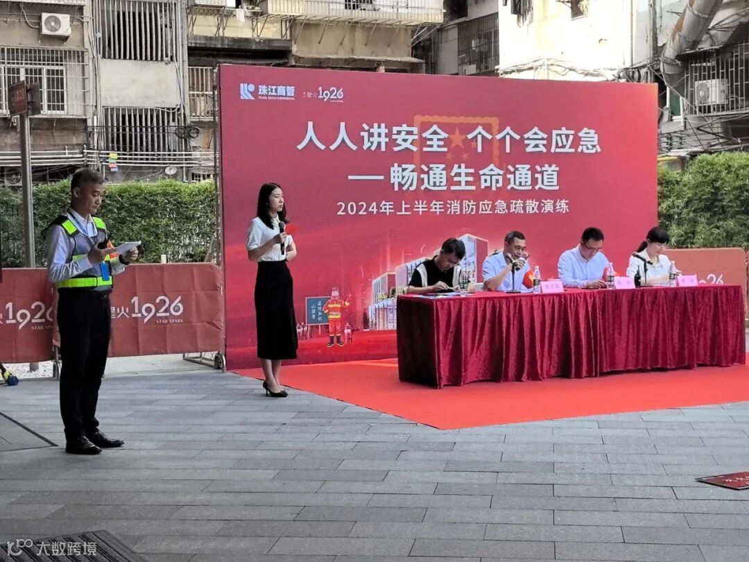 珠江·星火1926项目全体员工及部分商户代表约100人参加消防应急疏散演练活动,珠江商管党总支委员、副总经理陈杰忠担任演练总指挥。项目模拟出现火情应急情况,各员工迅速按照预案设定携带对应物资进入应急状态,根据指挥中心任务发布,有条不紊地开展各自岗位工作,有序完成火情上报、应急救援、逃生疏散等环节,在规定时间将场内全员撤离至安全区域,消防应急演练顺利完成,增强全员处理突发事件的能力,强化安全意识。
