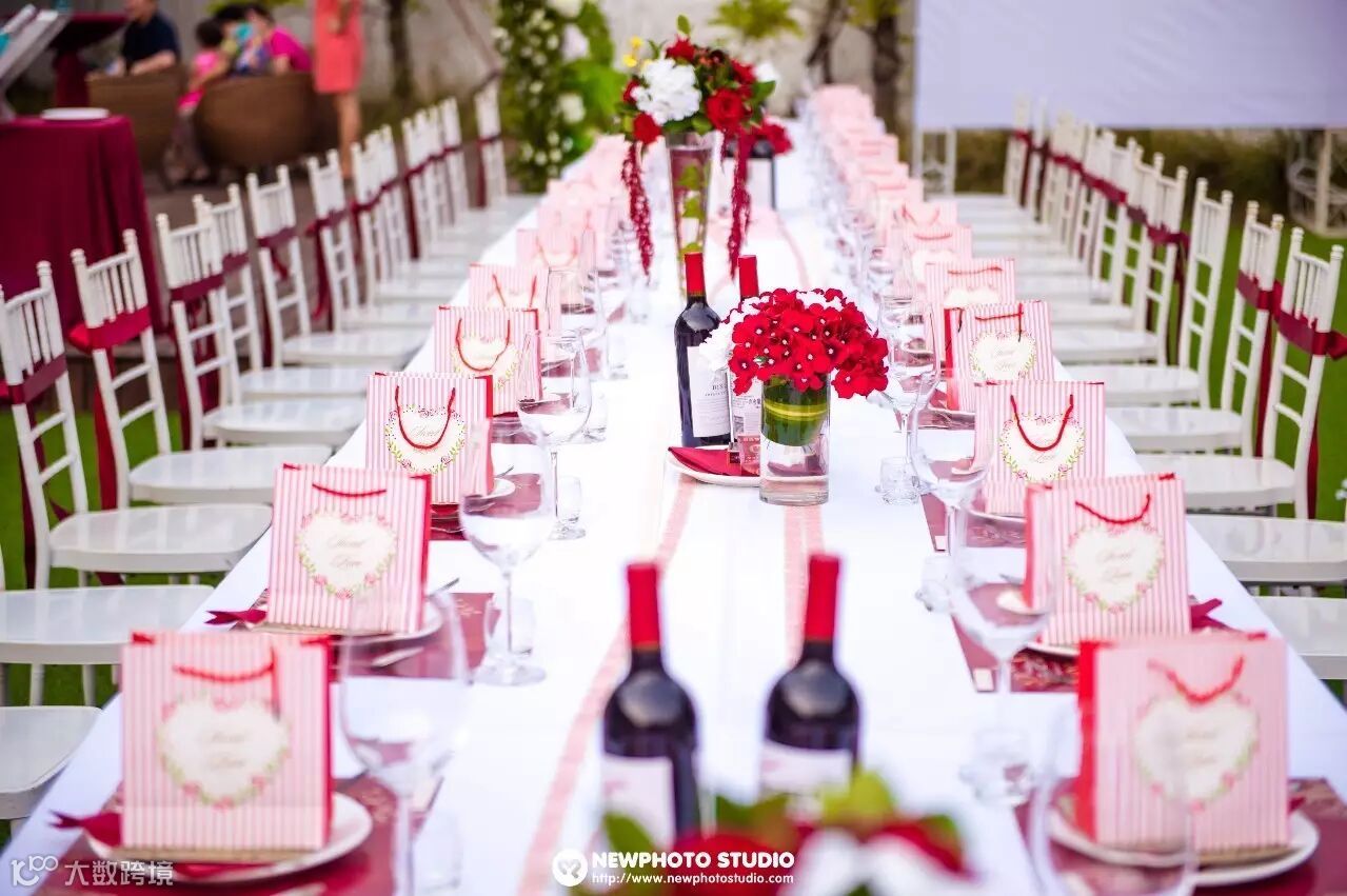 红酒、红花、红丝带、大红仪式亭各种混搭
