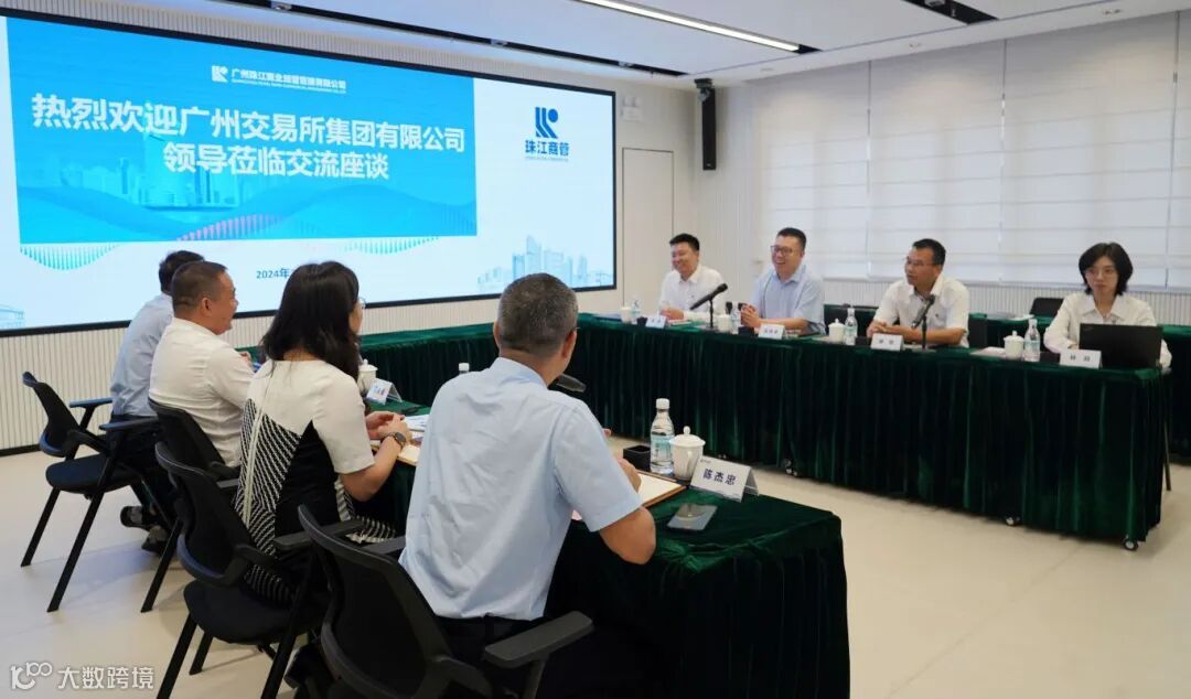 7月24日下午,珠江商管与广州交易所集团座谈交流会暨战略合作签约仪式在华乐大厦3楼第一会议室举行。广州交易所集团党委书记、董事长高振武与珠江商管党总支副书记、总经理周星星分别带队出席座谈会并签订合作协议。